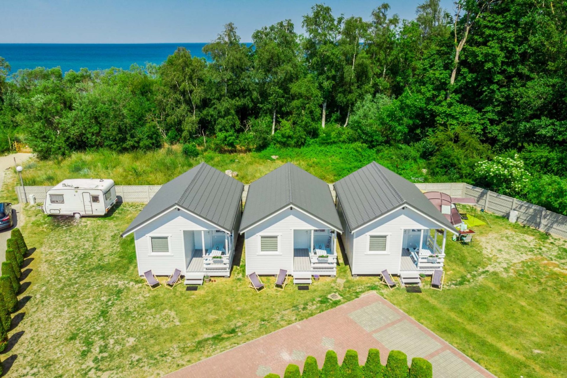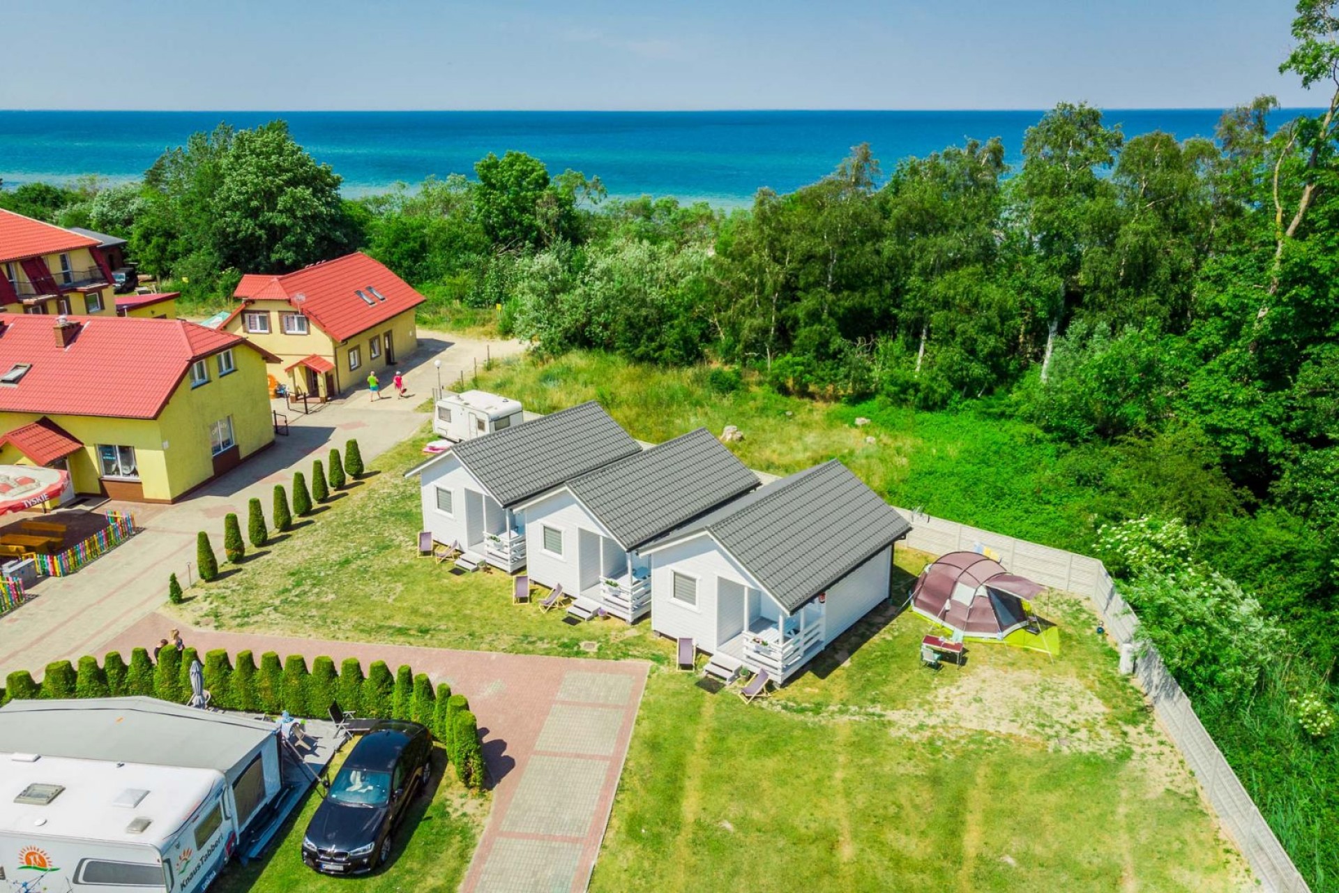 Zapraszamy do dwóch nowoczesnych apartamentów usytuowanych 15 m od malowniczej i piaszczystej plaży. znajdziesz tu wszystko czego potrzebujesz do udanego pobytu – od telewizora w salonie i sypialni do w pełni wyposażonego aneksu kuchennego ze sprzętem AGD.Każdy apartament składa się z sypialni, salonu z aneksem kuchennym, oraz łazienki. Na wyposażeniu apartamentu znajdują się dwa leżaki oraz parawan. W apartamentach nie akceptujemy zwierząt. Pobyt z pupilami jest możliwy jedynie na polu campingowym