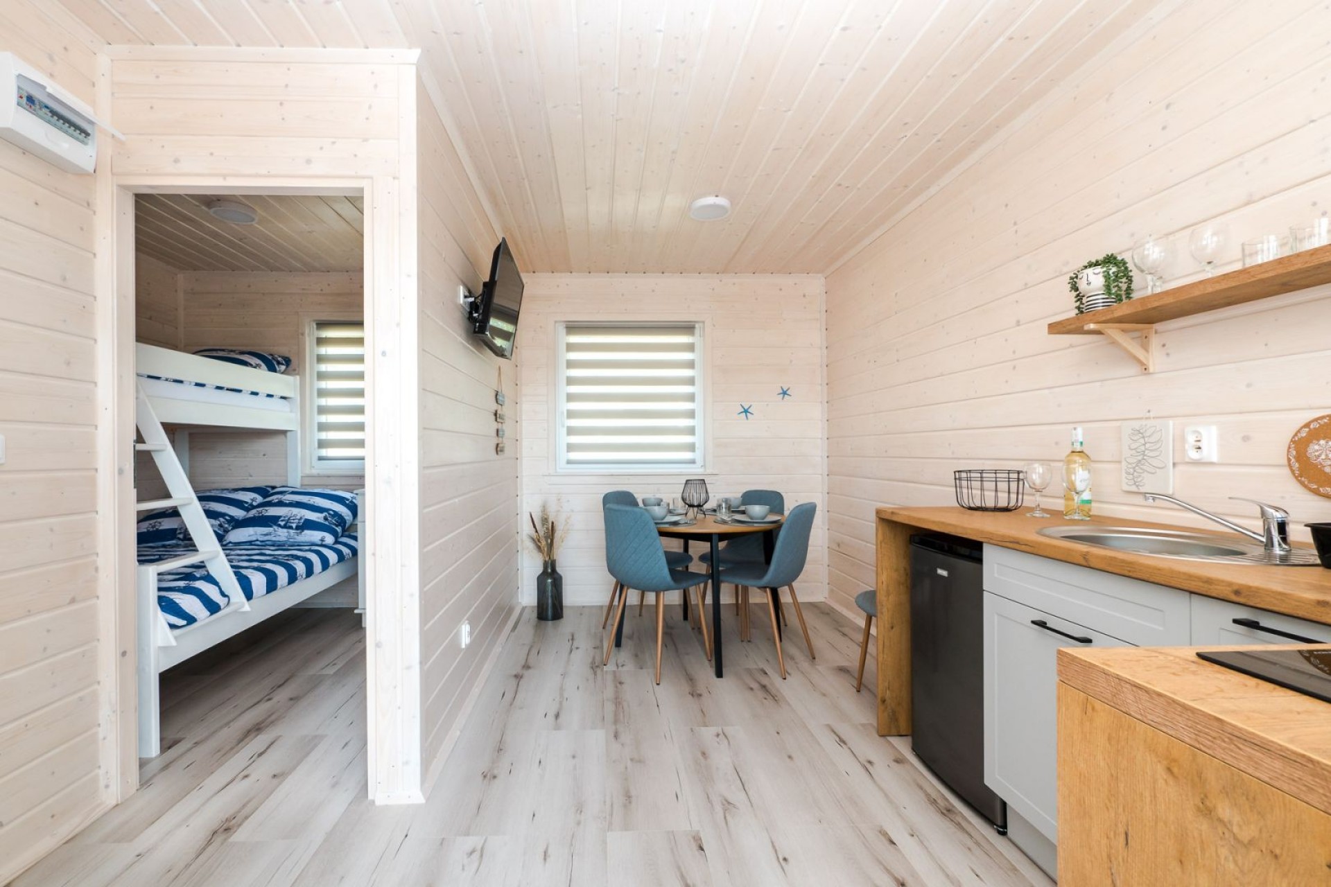 Nasza oferta poszerzyła sie o pięć domków drewnianych. Są to domki parterowe z dwiema osobnymi zamykanymi sypialniami, salonem połączonym z aneksem kuchennym i jadalnią. Czwarte pomieszczenie to łazienka. Domki będą dobrym rozwiązaniem dla Rodzin 2 + 1, 2 + 2 lub 2 + 3. Domki wyposażone są w min. dwa leżaki, parawn.