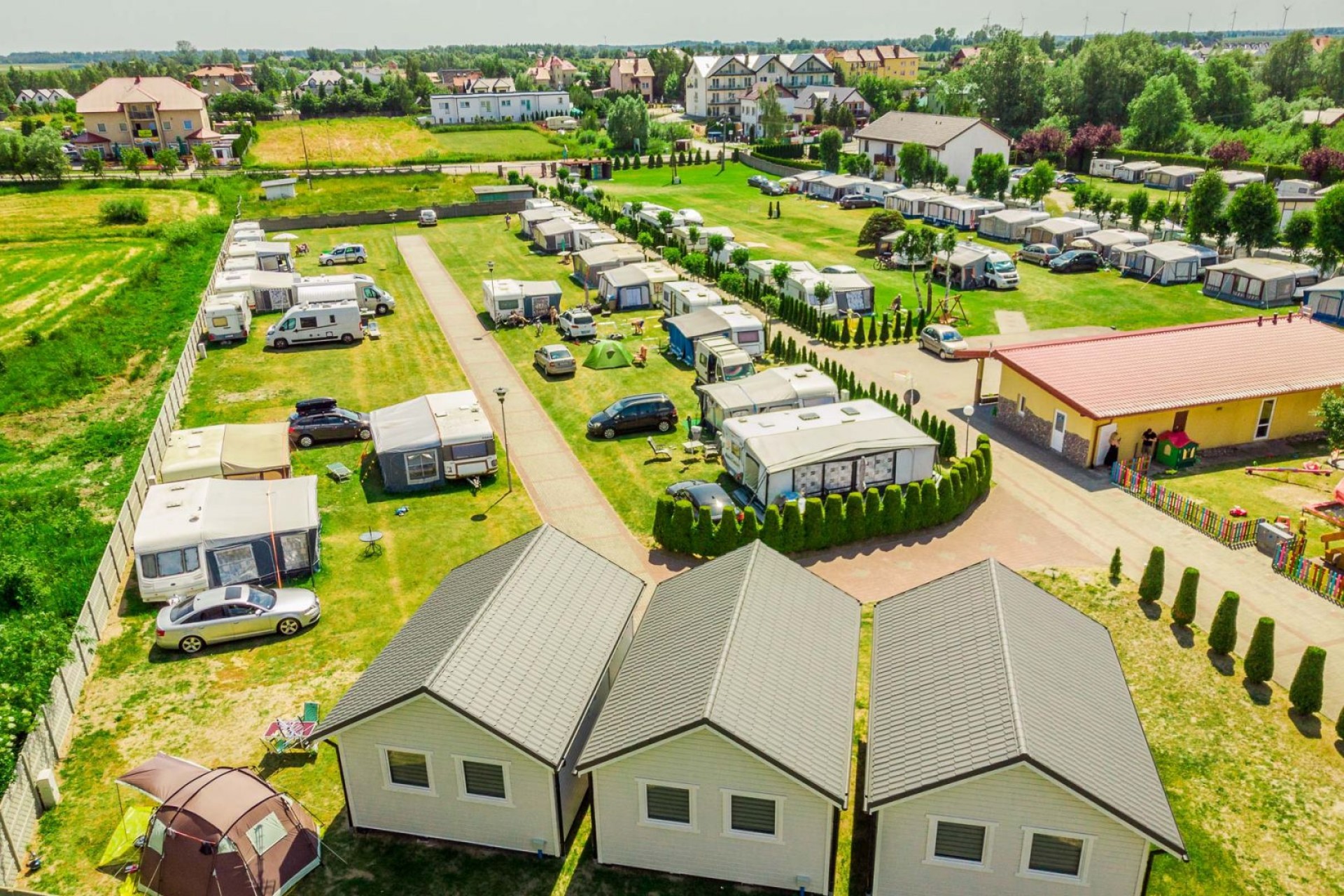 - Postawienie jednej przyczepy kempingowej ( dowolnej wielkości ) wraz z przedsionkiem, samochodem LUB jednego kampera z markizą LUB jednego namiotu dowolnej wielkości z samochodem