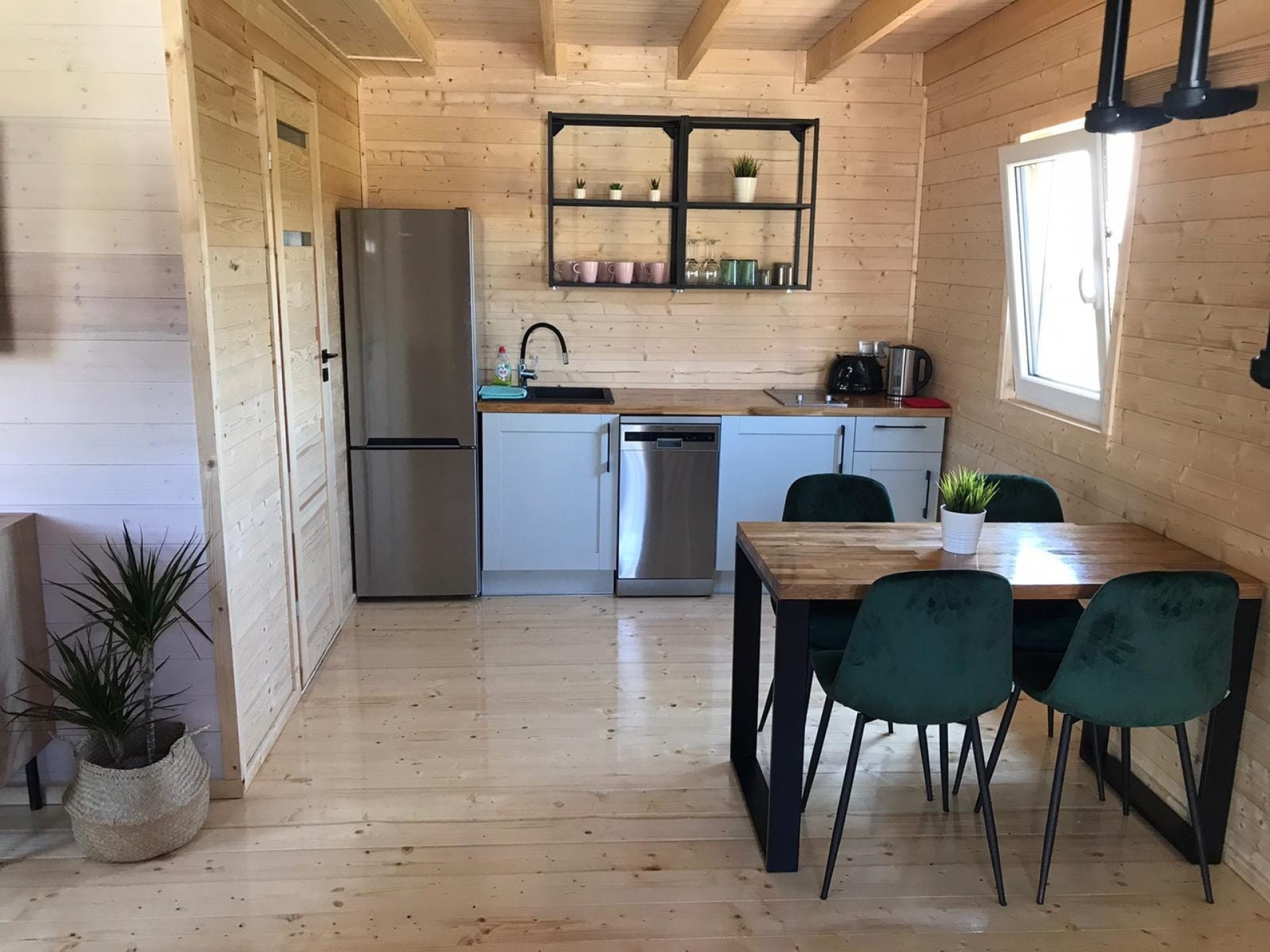 - aneks kuchenny z wyposażeniem: lodówka, zmywarka, płyta indukcyjna 2 ogniskowa, zlewozmywak, szafki z naczyniami kuchennymi, czajnik bezp. toster),