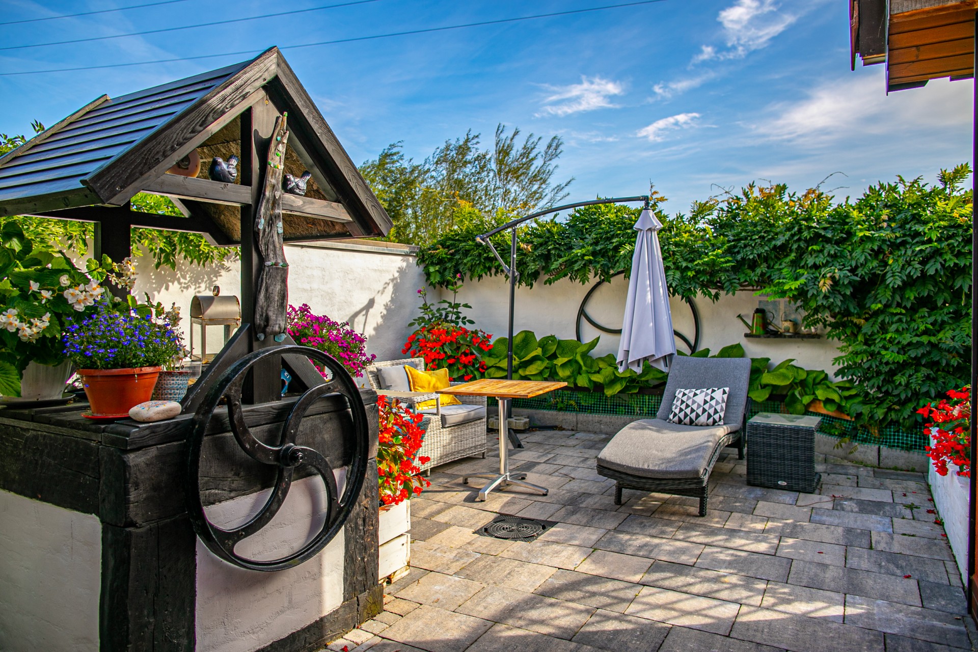 ✔ piękny ogród ze studnią i nastrojowym oświetleniem