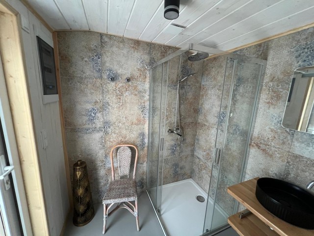– drewniane, ocieplane domki z aneksem kuchennym, sypialnią, łazienką i tarasem